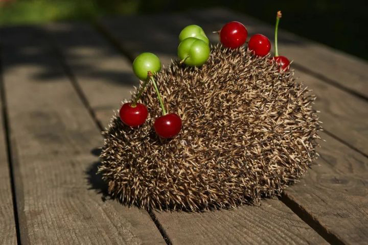 我们小时候,在课本里学到的小刺猬是全身扎满了果子的形象,其实刺猬虽然是杂食性动物,但它们很少吃果子,更不会将果子扎在身上带回家,它们的主要食物以昆虫和蠕虫为食,一只成年的刺猬一晚上就能吃掉200克左右的虫子,这可是上百只虫子才有的重量。